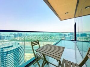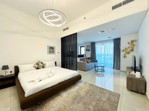 - Luxurious studio apartment in a high-rise with top-notch amenities.